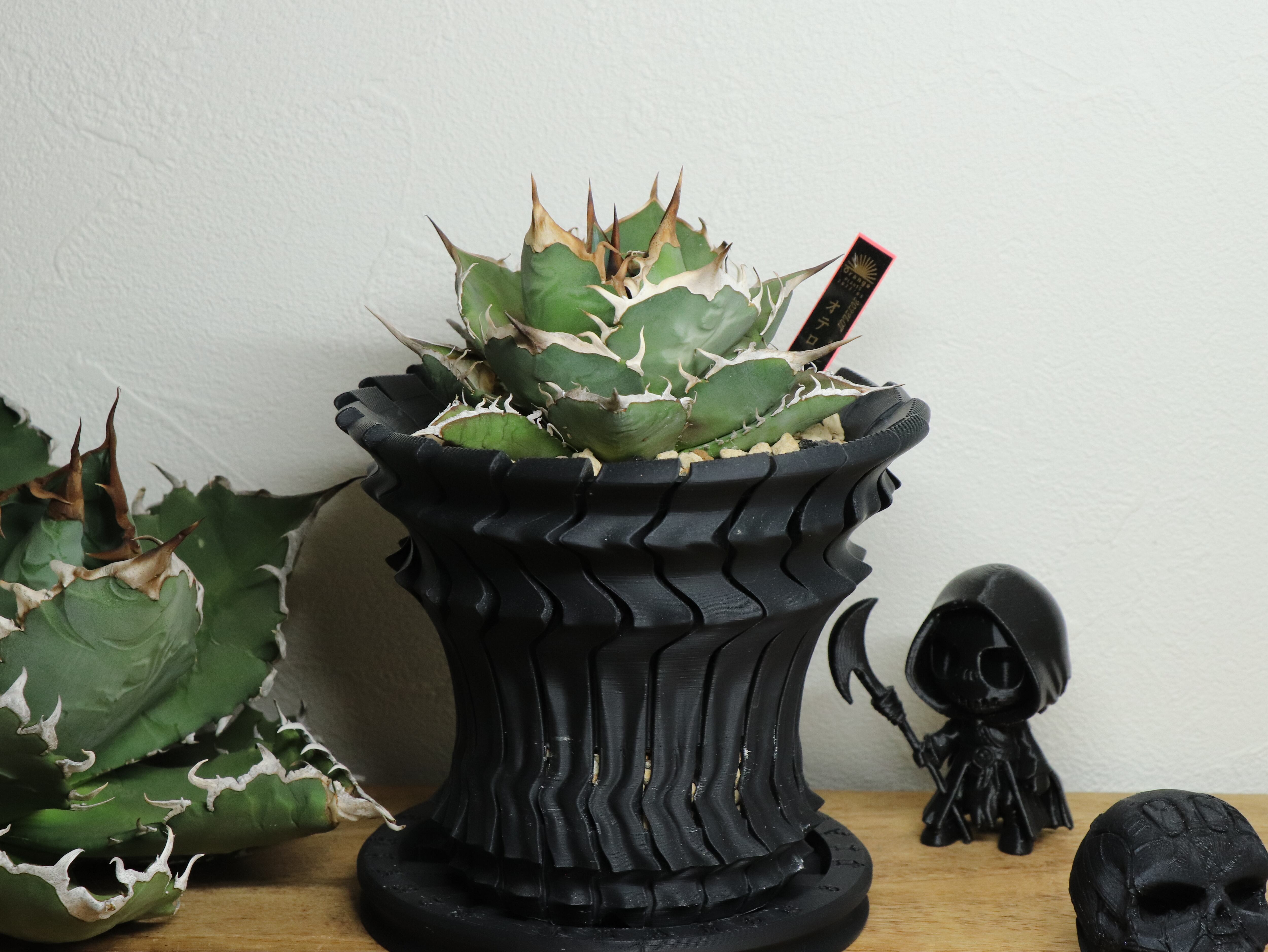 深い黒がもたらす重厚感と静寂が特徴の、唯一無二のアガベ育成鉢です。