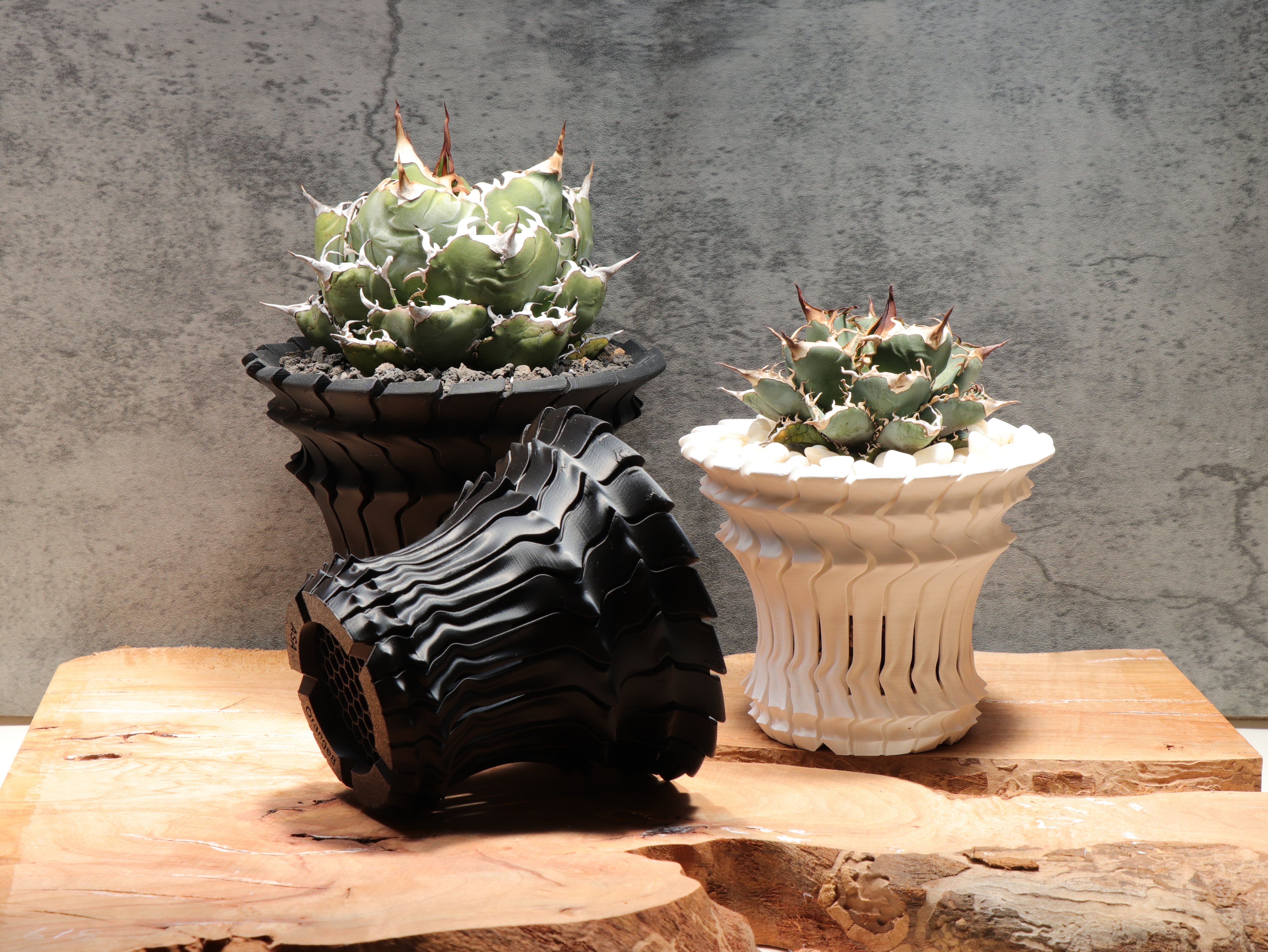 アガベを標本株のように育てるための育成鉢「~波~」。
